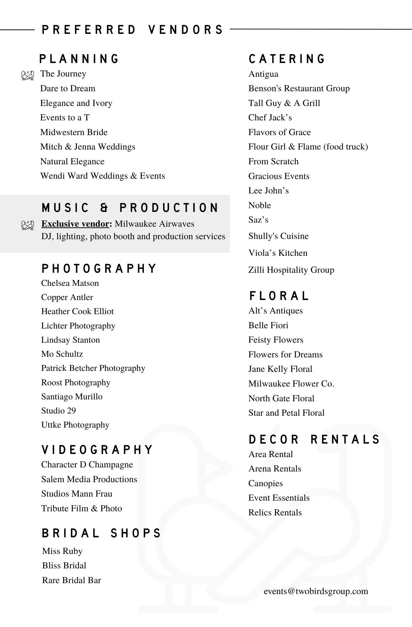 PREFERRED VENDORS
